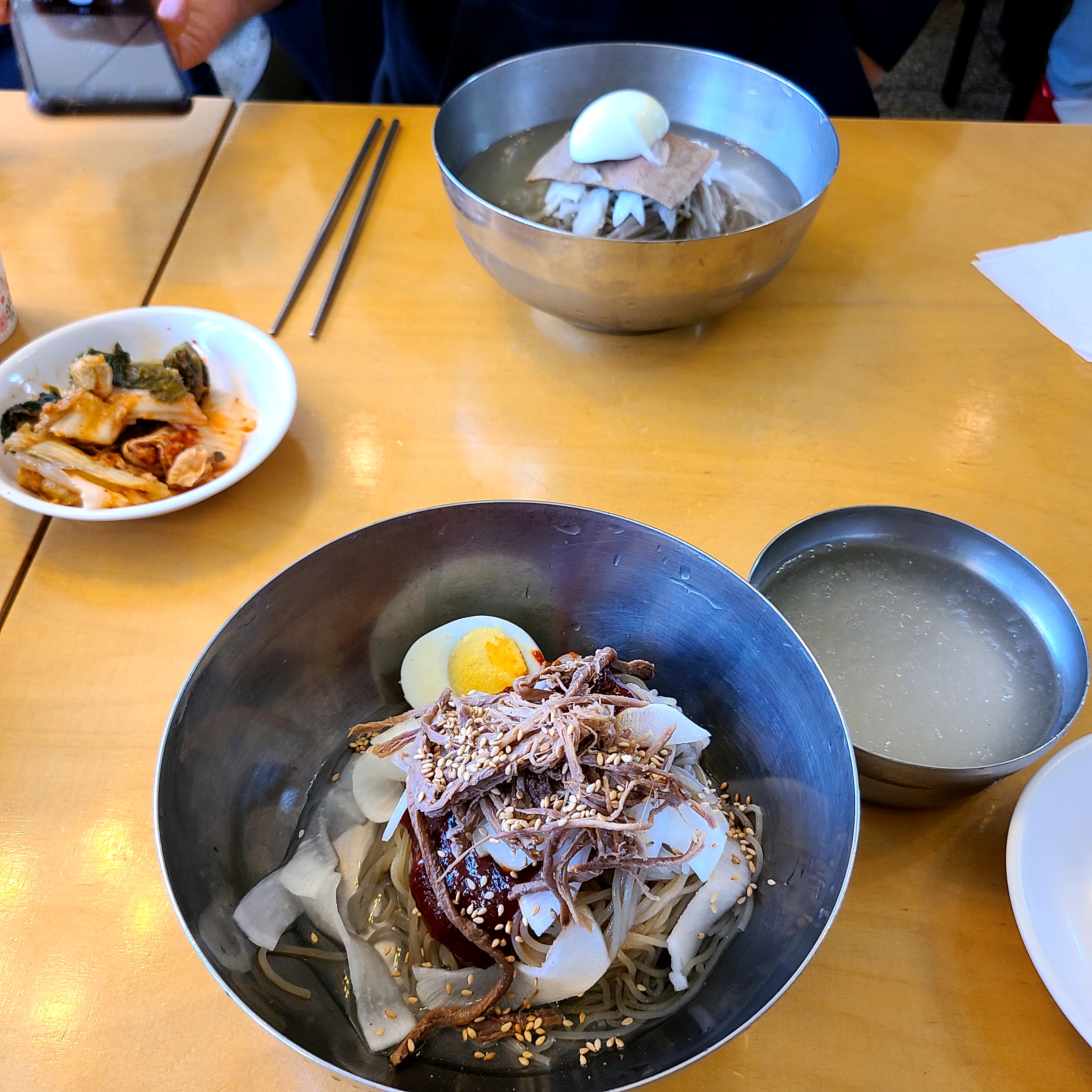 주문 : 물냉면 곱배기 / 비빔냉면 / 접시만두