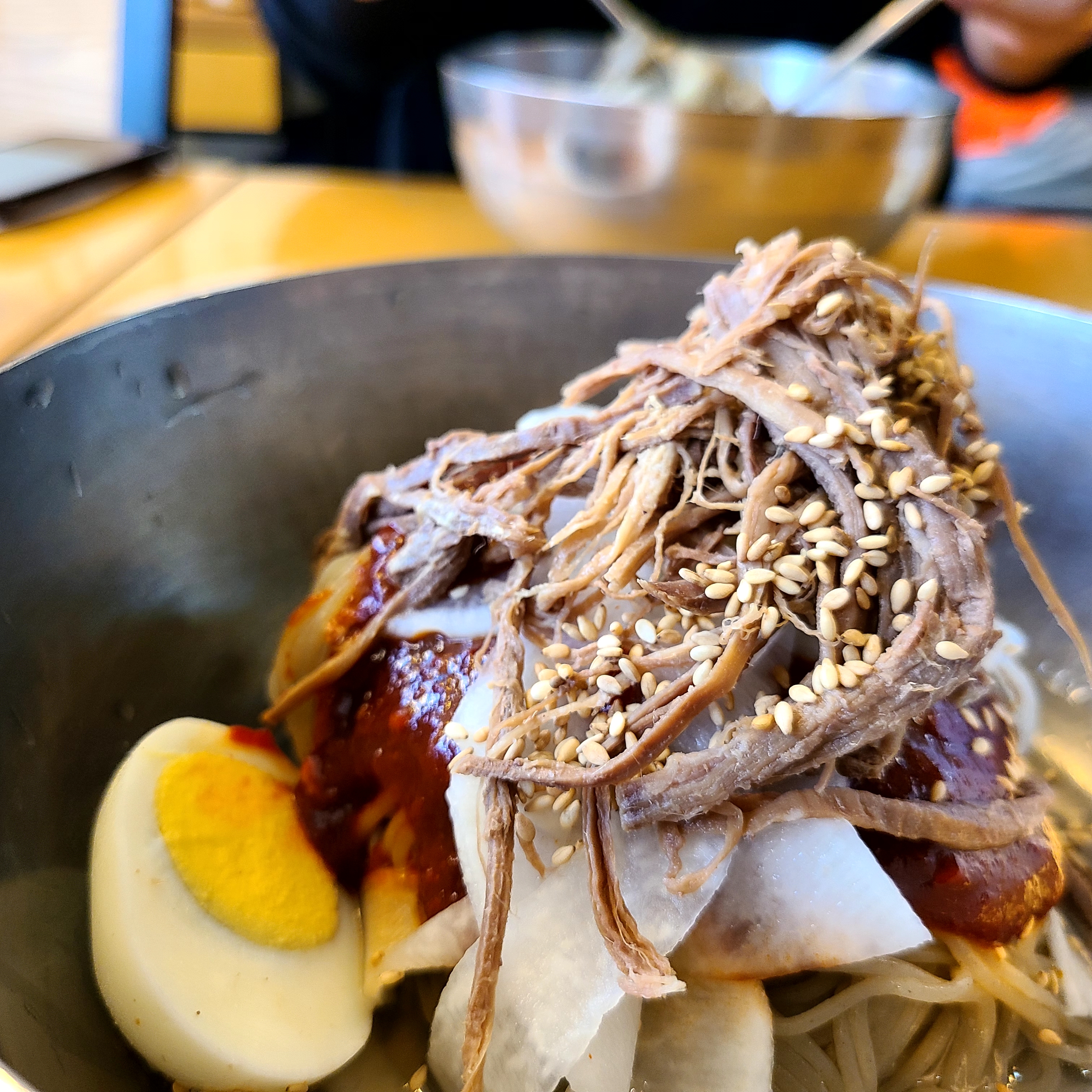비빔냉면에 육수가 따라 오는데 쏘쏘